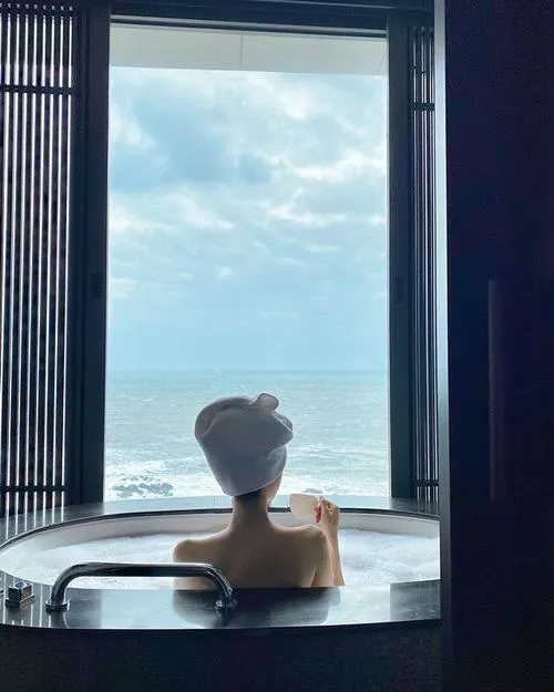 Bờ vai trần thanh mảnh xương quai xanh lộ rõ đôi chân dài miên man lấp ló qua nếp gấp khăn. Không gian thường là phòng tắm hiện đại bồn tắm nằm hay resort cao cấp với ánh sáng vàng ấm nến thơm và hoa hồng. Tất cả mang đến cảm giác sạch sẽ riêng tư nữ tính và cực kỳ gợi cảm khiến người xem khó lòng rời mắt.