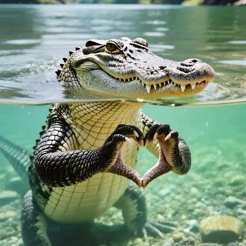 Ảnh vui cá sấu phác họa vảy lưng lộ rõ khi lặn lên