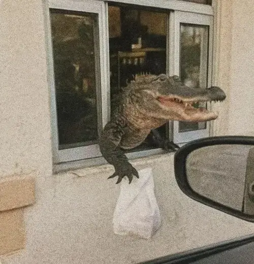 Hình chế meme cá sấu nhắc dấu bò ngoằn ngoèo ven lau