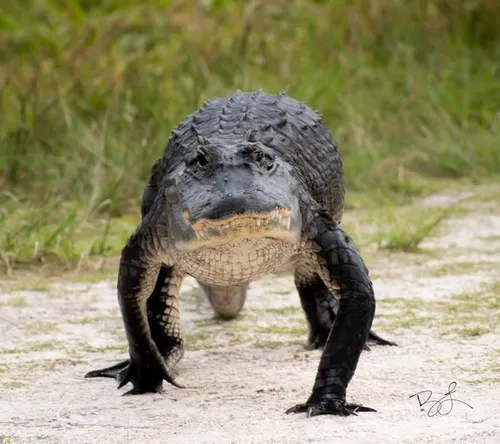 Ảnh troll sấu mô tả chân ngắn kiễng nhẹ trong bùn