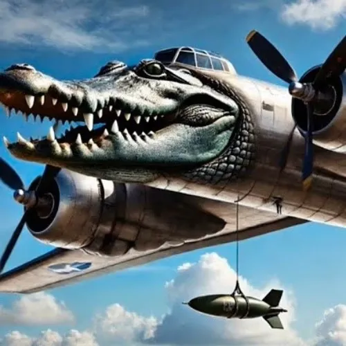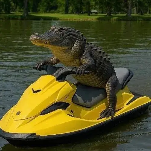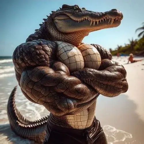 Hình meme hài cá sấu khắc họa đuôi quẫy mạnh giữa đầm bùn