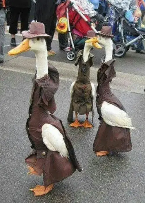 Bộ ảnh vịt nhà bạn nhìn cái là thấy chất hài bùng nổ. Có con mặc váy hồng điệu hết cỡ, có nhóm vịt khoác áo nâu nghiêm túc mà nhìn là cười xỉu, rồi tới mấy bé hóa thân badboy đeo kính đen tạo vibe ngầu lòi. Mấy tấm hoạt hình thì biểu cảm lơ ngơ đúng kiểu không biết chuyện gì đang xảy ra. Lại thêm vài bé vịt cosplay, làm nail, diện đồ truyền thống nhìn vừa ngộ nghĩnh vừa duyên. Cứ mỗi ảnh một sắc thái nên lời nói nào cũng đành chịu thua, vì biểu cảm tụi nhỏ tự kể chuyện rồi. Chỉ cần lướt qua nhẹ cũng đủ bật cười.