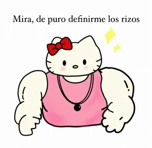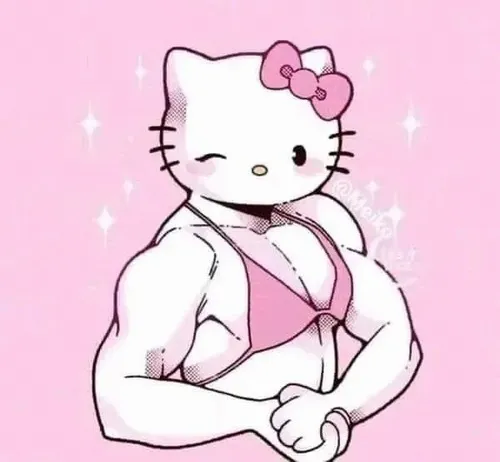 Meme hài mèo Kitty cơ bắp là ảnh hài phóng đại đặc điểm hình thể, biến nhân vật thân quen thành một hình tượng lực sĩ. Dạng meme này thường xuất hiện trong các tình huống khoe thành quả tập, trêu bạn thân về chuyện tăng cơ hay minh họa quyết tâm vượt khó. Gương mặt Kitty giữ nét mềm mại nhưng phần thân lại cuồn cuộn sức mạnh tạo nên độ tương phản chọc cười. Nhờ vậy meme được dùng rất linh hoạt trong cuộc trò chuyện.