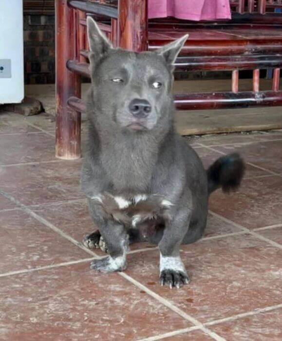 Chú chó nhếch mép khinh thường với ánh mắt đầy mỉa mai
