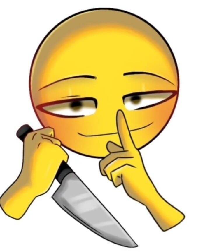 Emoji nhếch mép hài hước với tay cầm con dao
