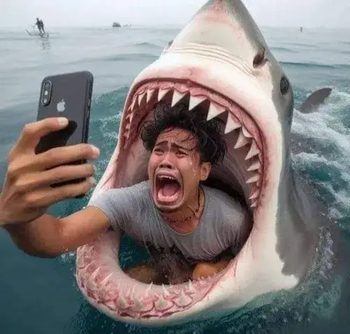 Con cá mập meme là dạng ảnh chế lấy khoảnh khắc cá mập, một sinh vật biển mạnh mẽ, trồi lên nhe hàm hoặc lườm nhẹ rồi phóng đại thành biểu cảm hài. Dù vốn gắn với hình tượng săn mồi nhưng lên meme thì lại trở thành gương mặt đại diện cho mấy pha mạnh miệng, gắt nửa mùa hoặc giả ngầu cho vui. Người dùng thường lồng caption kiểu cà khịa nhẹ, đối đáp dí dỏm hay mô tả cảm giác lúc muốn hù mà lại thất bại.