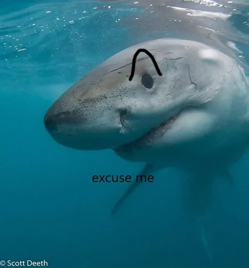 Meme cá mập gắn với cá mập trồi lên nhìn sắc.