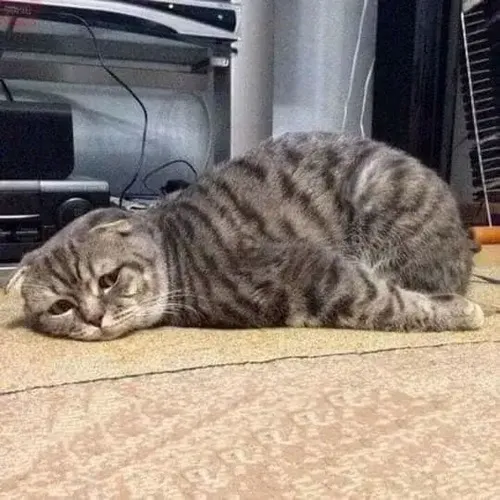 Meme mèo bất lực là ảnh hài xoay quanh gương mặt đơ nhẹ, ánh mắt cụp xuống và dáng ngồi lún sâu như thể bé mèo đã ném hết sức lực ra ngoài cửa. Khung hình phóng đại trạng thái buông xuôi, vừa bi hài vừa đúng kiểu đời.