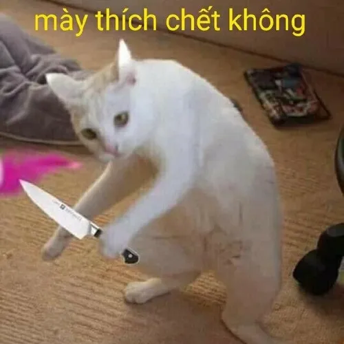 Loạt ảnh chế meme mèo cầm dao luôn mang vibe vừa hù dọa vừa buồn cười, kiểu như một chú mèo nhỏ xíu nhưng biểu cảm thì sát khí giang hồ muốn xử ai đó vì họ lỡ nói câu chọc tức. Hình ảnh dao bếp, ánh mắt sắc và dáng thủ thế tạo nên cảm giác nửa đáng sợ nửa hài kiểu mạng xã hội. Nhiều lúc chỉ cần nhìn tấm hình mèo vung dao là thấy đúng tâm trạng khi ta quá bực nhưng vẫn muốn giữ cách thể hiện hài hước cho đỡ căng.