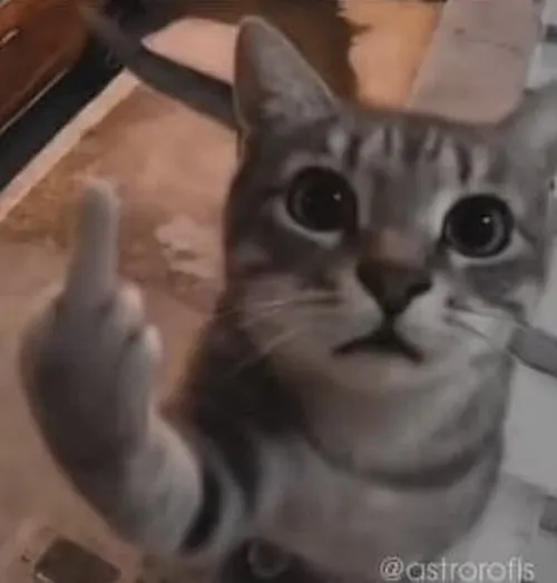 Meme mèo dơ ngón tay giữa là dạng ảnh hài mô tả một chú mèo với nét mặt câng câng, mắt liếc gằn, miệng hơi lệch như kiểu muốn bảo rằng mình không muốn hợp tác nữa. Hành động giơ ngón giữa (ngón tay thối – middle finger) tạo hiệu ứng phóng đại cảm xúc khó chịu, khiến khoảnh khắc trở nên vừa gắt vừa duyên. Nó rất hợp cho những tình huống bạn bị bạn bè trêu quá đà, ai đó đùa nhây hoặc khi mood chán đời lên đỉnh.