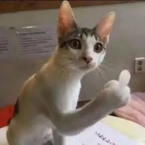 Meme mèo giơ ngón giữa luôn mang vibe gắt vui rất riêng, đúng kiểu Gen Z lúc muốn phản ứng mạnh mà vẫn giữ tinh thần bựa nhẹ. Nhìn khuôn mặt bất cần cộng thêm cái chân bé xíu chĩa lên tạo nên cảm giác phũ phàng nhưng lại buồn cười khó tả. Mấy khoảnh khắc này xuất hiện trong chat là ai cũng hiểu ngay bạn đang chán đời hoặc bị ai đó làm phiền. Có lúc lời nói không diễn đạt đủ, còn cái biểu cảm này thì trúng ý tức thì.