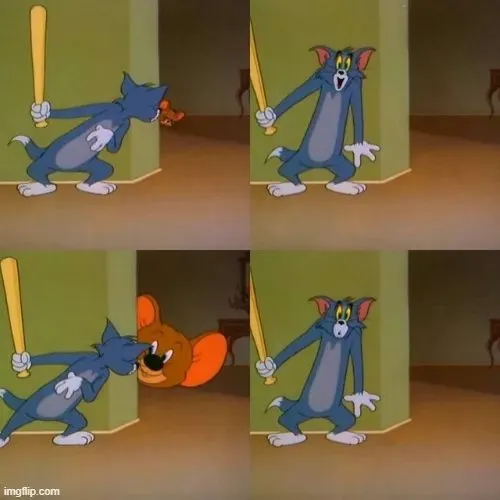 Meme chế Tom là dạng ảnh hài bắt lại phút giây Tom rơi vào tình huống tréo ngoe, gương mặt méo mó phóng đại, tạo cảm giác y chang mấy lúc mình gặp sự cố oái oăm. Những kiểu như rượt Jerry rồi tự dính bẫy, hay đứng hình vì cú phản đòn bất thành đều trở thành chất liệu meme.