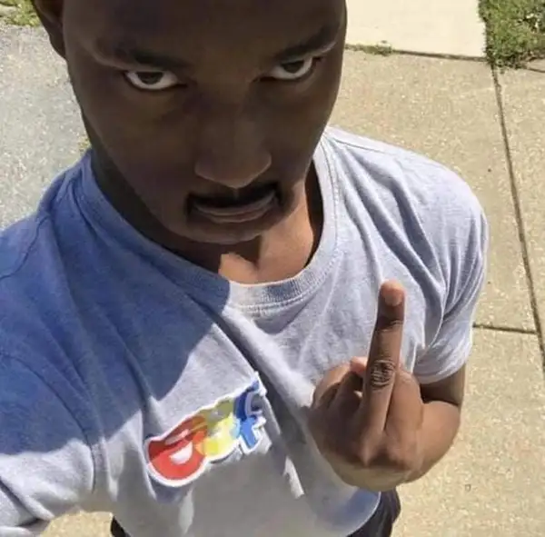 Meme em bé da đen giơ ngón tay giữa