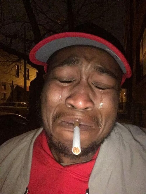 Meme anh da đen hút thuốc buồn bã