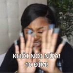 Meme “10 điểm” xuất phát từ một đoạn clip nổi lên vào giữa năm 2022, trong đó người phụ nữ vừa giơ 10 ngón tay vừa hô liên tục “10 điểm, 10 điểm” để khen hoặc “chốt đơn” chuyện gì đó. Sự vui nhộn và dễ nhớ khiến cụm từ này trở thành trào lưu, được giới trẻ lan truyền khắp mạng xã hội để khen bạn bè một cách hài hước.