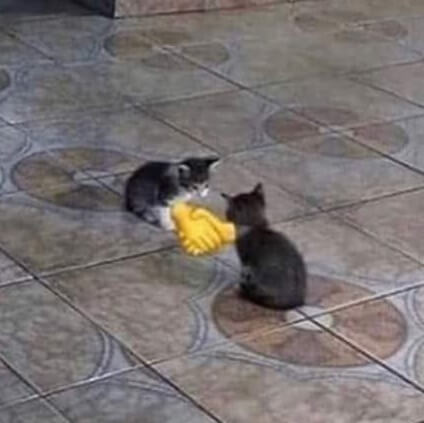 2 chú mèo bắt tay