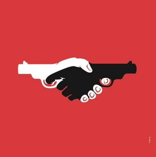 Tuy bắt tay nhưng lại hình súng