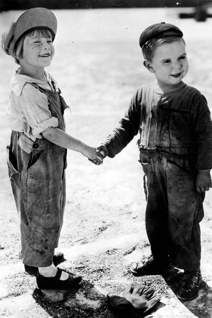 2 cậu bé bắt tay nhau vô tư