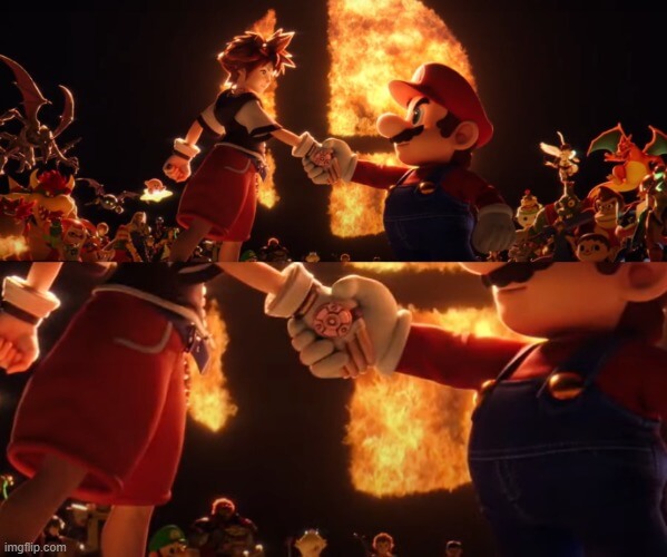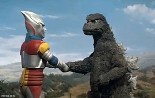 2 nhân vật hoạt hình bắt tay