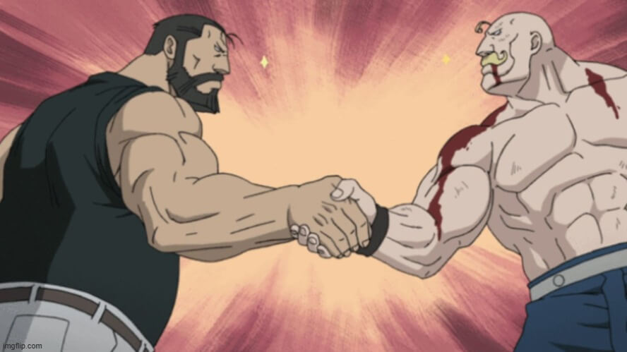 2 gã đàn ông đô con bắt tay